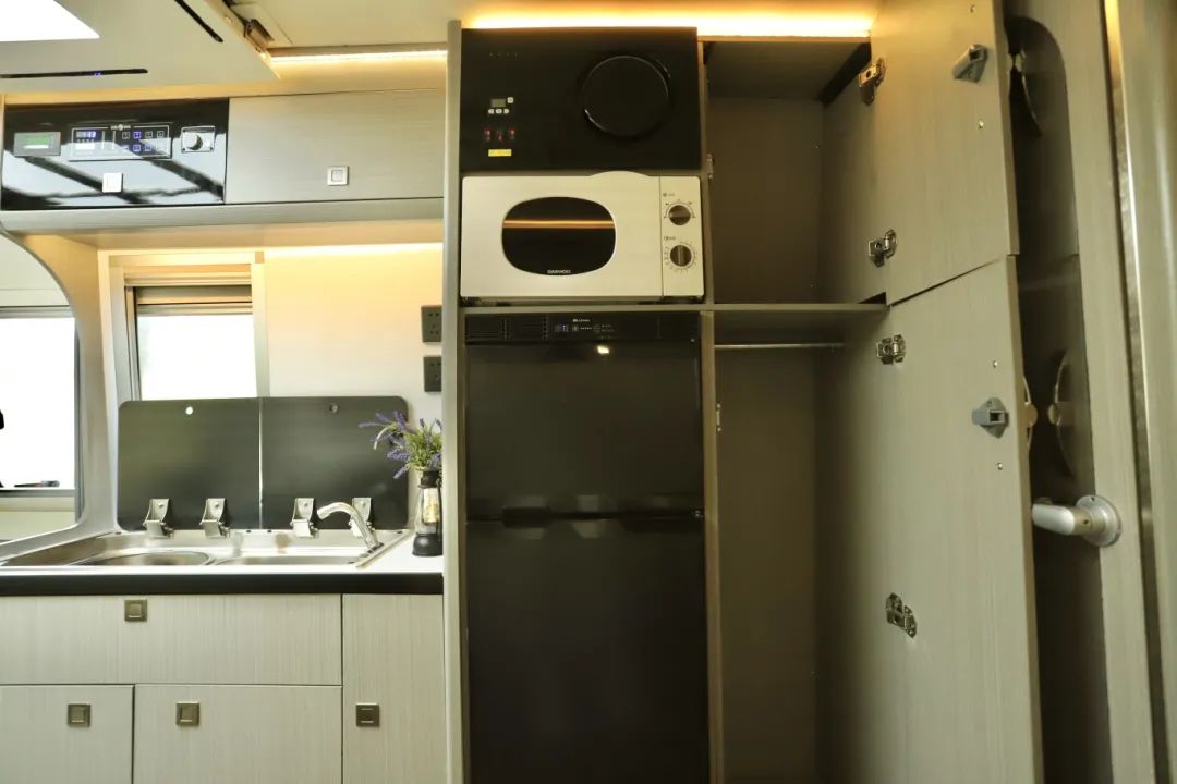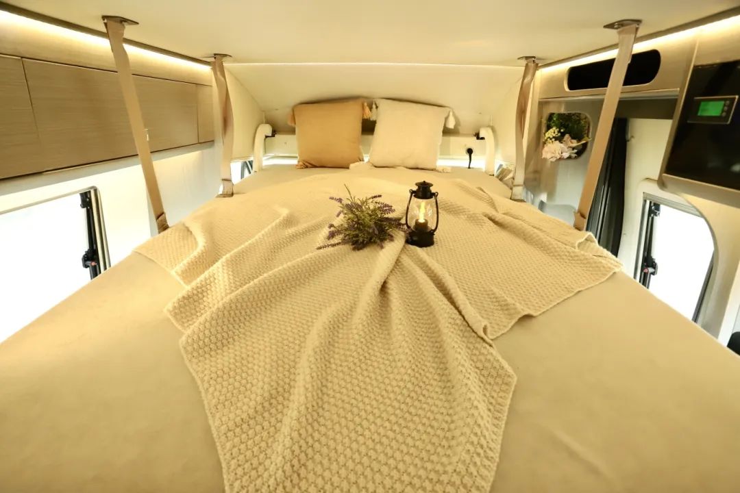 現(xiàn)車、現(xiàn)車、高配現(xiàn)車!超全配置,超大容量的依維柯鐵C來了! B型車的外形內(nèi)部有C型車的使用面積!關(guān)鍵在價格上絕對會給您驚喜!先來看看上裝配置如何? 基于依維柯歐勝底盤打造而成,整車尺寸為5970×2340×2950mm,車長不足6米,藍(lán)牌C照即可駕駛。 整車外觀采白黑搭配,車身沒有任何拉花設(shè)計(jì),簡約大方,出行時也很低調(diào)。 動力方面3.0T柴油發(fā)動機(jī)匹配8AT采埃孚變速箱,最大功率可達(dá)125KW,峰值扭矩可達(dá)400N.m,后驅(qū)后雙胎的設(shè)計(jì)提高了整車的動力和穩(wěn)定性,動力十足,輕松應(yīng)對各種復(fù)雜路況! 本車采用中門上車,左側(cè)為本車的外置廚房區(qū)域,為您安裝的是戶外兩截式抽拉柴油爐,直取油箱內(nèi)的柴油作為燃料,搭配上方內(nèi)外貫通式的儲物空間,內(nèi)外拿取方便。 車身尾部安裝有自行車架和后爬梯,方便您定期去往車頂清理太陽能板和空調(diào)、換氣扇的外機(jī)。 外接市電口和重力加水口分別在車身左側(cè),本車為您配備190L凈水箱、70L灰水箱;電是800Ah鋰電池、600W太陽能板,3000W逆變器,另外本車還配備有泓晟達(dá)汽油發(fā)電機(jī),讓您用電無憂! 上來車,中門右手邊便是內(nèi)置廚房區(qū)域,為您配備電磁爐、洗菜池、冷熱水可調(diào)節(jié)水龍頭、反滲透設(shè)計(jì)凈水直飲系統(tǒng)、五孔插座,設(shè)施齊全,車內(nèi)電磁爐做頓簡餐,車外柴油爐做頓大餐,房車烹飪就是這么簡簡單單! 除此之外,廚房區(qū)域還準(zhǔn)備了充足的儲物空間放置廚房用具,上方一個容量可觀的的木制吊柜,放日常所需的廚具碗具很是夠用。桌臺下側(cè)有可抽拉的儲物抽屜,方便您放些鍋碗瓢盆。 廚房旁邊微波爐、96L雙開門冰箱,上方冷凍,下方冷藏,設(shè)施非常齊全。所以即便是天氣或條件不允許時,您可以在車內(nèi)做飯享受美食。 至于衣物和行李的存放,不僅有固定床下方內(nèi)外貫通式的儲物空間,冰箱旁邊的立式衣柜可以掛一些不易疊放的衣物或者日常換洗的衣物。 轉(zhuǎn)過身既是本車的多功能會客廳區(qū)域,主副駕駛向后旋轉(zhuǎn),即可與二排座椅形成四人對座狀態(tài)。 當(dāng)使用升降桌時,只需一鍵升起就可以得到尺寸為53*70cm的兩人使用的小桌子。 人多時將桌子進(jìn)行拓展之后尺寸變?yōu)?3*120cm,妥妥四人使用沒問題。 當(dāng)會客區(qū)的升降桌不使用時,腳下這個空間內(nèi)女士練瑜伽、男士做拉伸都非常充余,用車友的話說,在這打地鋪都可以。 會客區(qū)中排兩張獨(dú)立的豪華航空座椅,擁有八項(xiàng)調(diào)節(jié)功能,長途旅行的路上也可以很舒服的享受,折疊桌的設(shè)計(jì)充分利用了會客區(qū)的橫向空間,使空間達(dá)到優(yōu)化和利用。 會客廳旁邊以及全車的外推窗采用的都是雙層真空亞克力材質(zhì),三檔調(diào)節(jié),保溫隔熱降噪音,內(nèi)帶有防蚊簾隱私簾。 在航空座椅上坐著,視線所及處就是32寸液晶大電視,可聯(lián)網(wǎng)可投屏,想看什么您自己決定。兩側(cè)安裝音響,藍(lán)牙連接,音質(zhì)流暢且優(yōu)質(zhì)。 右手邊的鏤空式大容量儲物格,設(shè)計(jì)得非常人性化,可以存放我們?nèi)粘5碾s物,比如經(jīng)常容易丟失的鑰匙、電梯卡等小物件,避免了尋找的麻煩。 后方有如此寬敞的過道,也得益于車內(nèi)固定床的巧妙設(shè)計(jì),床可以進(jìn)行拓展,根據(jù)需要隨意調(diào)節(jié),最大尺寸1.3*2m,兩人使用甜甜蜜蜜。 第二張就是頭頂上方的鋁合金大吊柜,容量超大,只需要按下電控按鈕,就可以下降翻折成為一張0.9*1.9m的單人床,上下鋪的既視感,睡一位女士或者家里小孩空間都是足夠的,承重達(dá)到300斤! 第三張就是會客廳上方的一鍵升降式吊床,平時就是九宮格燈池,用的時候直接下降成為1.3*2m的雙人大床,承重600斤,多根承重繩連接,承重性您不用擔(dān)心,且床板為鋁合金鋪設(shè),輕量化的同時承重性也相當(dāng)在線! 衛(wèi)生間位于后方固定主床旁邊,門上一整扇鏡子,方便您查看每日出行裝扮。 內(nèi)部設(shè)施一應(yīng)俱全,上方雙向換氣扇、獨(dú)立照明系統(tǒng)、賽特福德抽拉旋轉(zhuǎn)馬桶、固定洗手池、淋浴花灑等設(shè)施 ,可以滿足您出行的衛(wèi)浴需求。 要想房車生活過的好,空調(diào)、駐暖肯定少不了!空調(diào)為您安裝的為房車專用頂置空調(diào),就處于固定床的上方,靜音、變頻,制冷效果極好。 取暖的話,為您安裝有柴油駐暖、柴油水暖,有了他們的加持,在車上您就不用擔(dān)心取暖以及熱水供應(yīng)的問題! 超大空間、動力十足、安全實(shí)用的依維柯鐵C房車,您還滿意嗎?上裝已介紹完畢,至于車友們最關(guān)心的價格,飛翔絕不讓您失望!不賣關(guān)子,直接給您送兩大福利!一、直降10萬元!二、包牌包稅!一站式購車解決您的后顧之憂! 全球僅此一臺!高配現(xiàn)車,所見即所得!機(jī)會不是天天有,屏幕前的等等黨們,該出手時就出手哦!