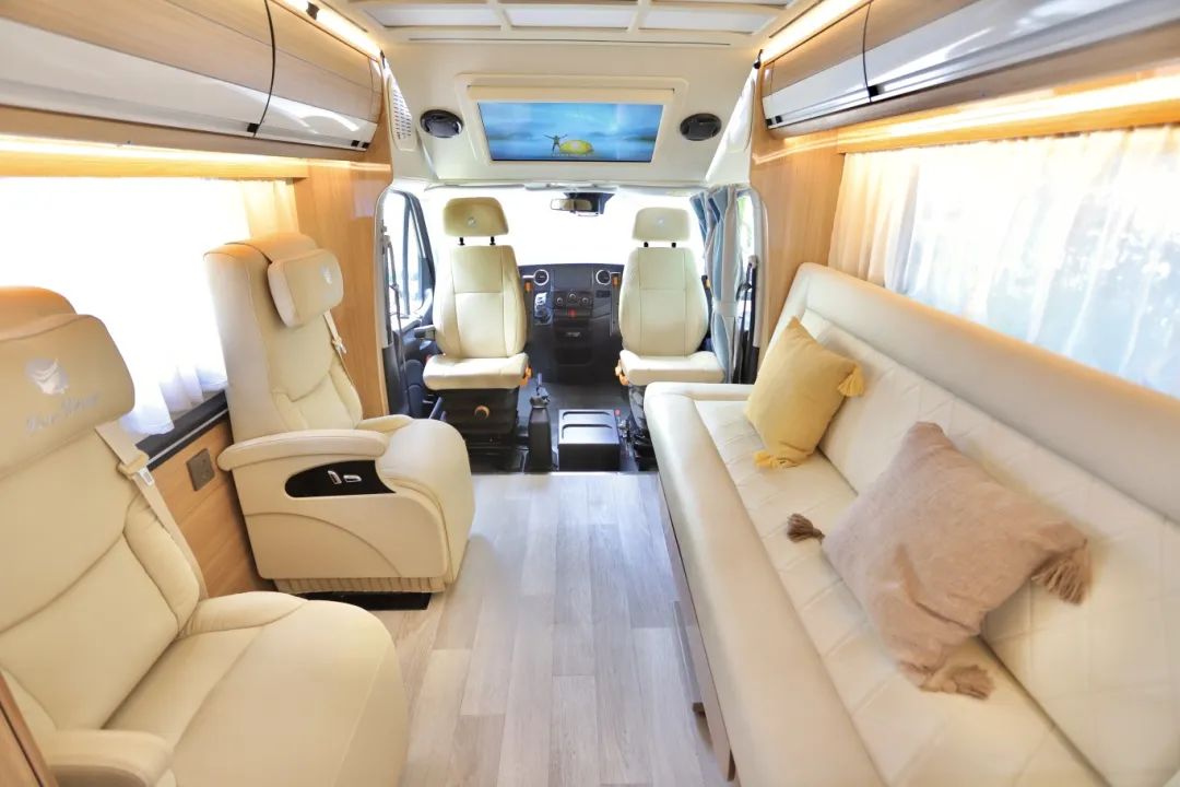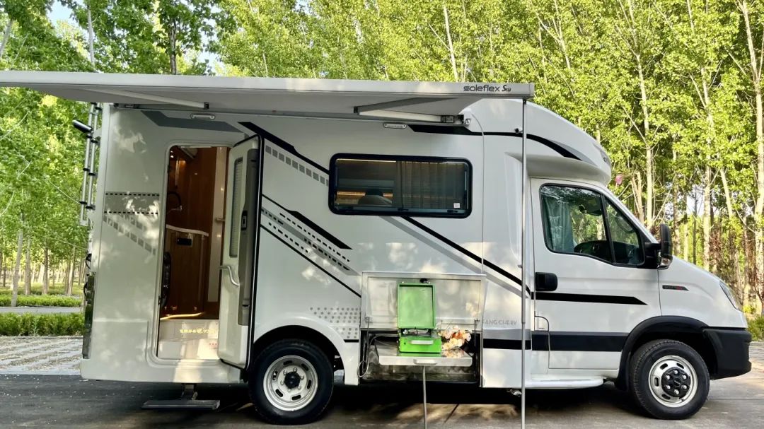 整車車長5.99m,寬2.3m,高3m,整體的通過性相當(dāng)不錯(cuò),藍(lán)牌C照可駕駛,殼體的三明治結(jié)構(gòu)能更好的保溫隔熱隔音。黑灰色的拉花低調(diào)的同時(shí)也更加精致。小額頭線條流暢,上方的觀景天窗打開后可以可以通風(fēng)換氣。