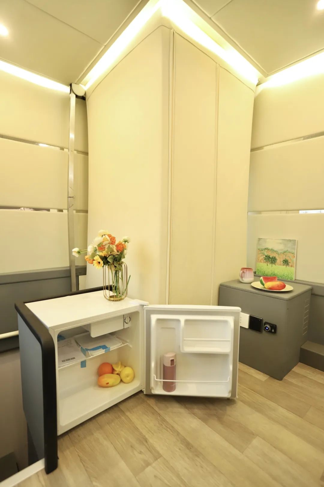 床尾處還有一個(gè)50L的小冰箱,放一些藥品或者茶葉,用起來(lái)更方便一些。