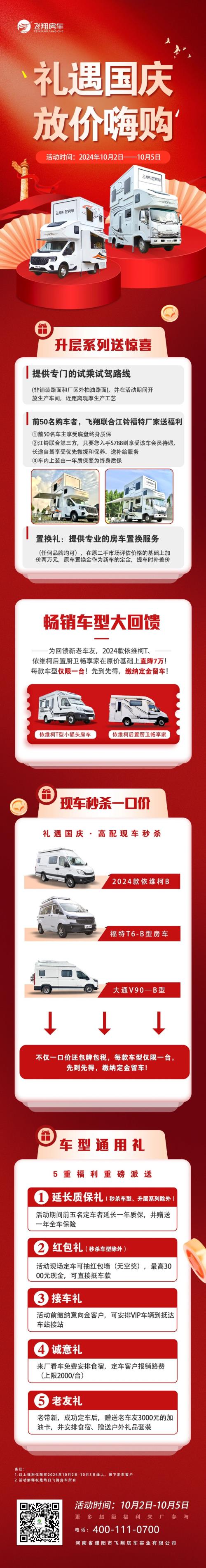 您準(zhǔn)備好了嗎?10.2號-5號 特惠價格 現(xiàn)車充足 飛翔房車全體員工歡迎您的光臨!