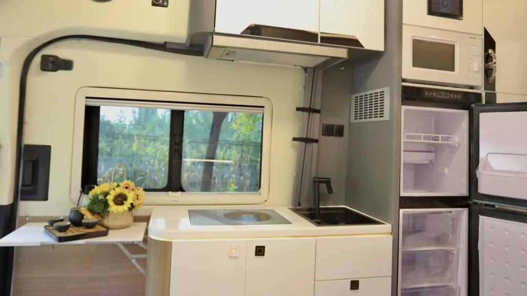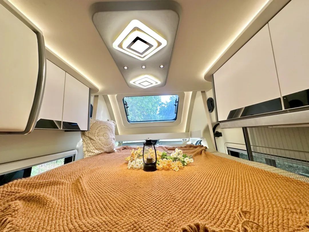 迎著金九銀十,房車出行旺季的東風,2025 款飛翔家族基于福特 T8 底盤打造的 B 型房車 “精典” 正式亮相! 福特T8底盤,搭載第五代 Puma 2.3T 柴油發(fā)動機,8AT采埃孚柴油自動擋變速箱,最大功率可達 126kW 以上,最大扭矩高達 430N?m,動力強。 福特T8底盤有多好開全國關(guān)注房車的人都知道! 底盤好是因為底盤廠家的功勞,但上裝好用才能歸功于飛翔房車工廠。 打開中門,映入眼簾的依然是我們熟悉的外置廚房區(qū)域,上方2.5×3米的遮陽棚,戶外照明給大家配備到位。 月牙卡扣打開將會得到一個大的操作廚臺,長140公分、寬61公分,您擺上十個盤八個菜空間也綽綽有余!而且下方有小支腿,穩(wěn)固性非常好,操作收放非常便捷。 上方的儲物采用內(nèi)外貫通式的設(shè)計,內(nèi)外拿取相當方便,不用您來回的跑上跑下拿廚具。 爐具采用便攜式柴油爐,燃料直取自油箱內(nèi)的柴油,經(jīng)濟節(jié)能,還具有高原模式。 車尾處,之前我們見到的洗衣機都安裝在房車內(nèi)部,空間又小,使用的時候還要蹲著、趴著,對于上年紀的人來說特別不方便,但飛翔在車尾準備了一個背包式洗衣機,高度適宜、操作簡單,插上水管連接上水口下水口即可輕松使用,洗衣機需要清理時下方還有活軟塞,提高了您后期的使用體驗感。 當然您短途出行不需要使用時,四周已經(jīng)提前預留了拆卸螺絲,可以拆下來放家里,操作很簡單。 旁邊是爬梯+自行車架,可以放兩臺自行車,車頂上是600W的太陽能板,想要清洗的話通過后爬梯上去也非常方便。 下方安裝了電動駐車支腿,遙控一鍵控制,上下車時車輛不會產(chǎn)生晃動,提高了車的穩(wěn)定性,生活起來更加舒適。 主駕駛一側(cè)后方配備兩種充電方式:220V的外接市電口以及新能源接口、重力加水口,這款車的水電給大家標配的是200L清水、75L灰水,5000W逆變器,10度電,水電還是比較充足的! 來到車內(nèi)第一印象就一個詞!通透!而且這款車B型車內(nèi)不僅有床、還是三張! 有車友就會問“有必要 要這么多床嗎?”確實在B型房車狹小的空間內(nèi),如果多人在里面生活,肯定會造成一些不便。但是我們設(shè)計的三張床,并非為了設(shè)計而設(shè)計,在平時,它們大多是儲物空間,僅在滿載或者應急狀態(tài)下才會作為床鋪展示出來。 比如頭頂上方這張折疊抽拉式的吊床,需要時只需要下拉然后向外抽拉即可呈現(xiàn)一張1.3×2米的雙人床,早上起床需要收回時,您也不用考慮被子、枕頭的收納問題,直接往前一推,隱藏在車頭處即可,不占用您任何額外的儲物空間以及會客廳的上方空間。 后方的兩張床也大有玄機,上方看似是一組吊柜,經(jīng)過下降,外翻完全展開后與下方固定床未拓展時的尺寸相同,200×80公分的單人床。 下方床鋪可利用衛(wèi)生間門板進行橫向拓展,完全展開尺寸為1.3×2米,妥妥的一張雙人床。 很多人都在說,這樣設(shè)計是個BUG,床鋪拓展完以后衛(wèi)生間馬桶無法正常使用,其實這個問題是極限睡5人的狀態(tài),但是這款車衛(wèi)生間馬桶也照樣能用,您可以準備一個便攜式馬桶,晚上只需要把馬桶放在過道里,即可解決此問題。 當然如果您是四人出行的話,衛(wèi)生間就無需拓展,上下各睡一人,前方吊床睡兩個人,衛(wèi)生間照常使用。 床下儲物空間很寬敞,真正做到了床有多大儲物空間就有多大,而且床下是雙開門的設(shè)計,拿取更加方便。 衛(wèi)生間門板上安裝全身鏡,而且門的邊角也設(shè)計成了圓弧狀 ,比原來看上去舒服不少。 內(nèi)部尺寸也變大了十幾公分,雙臂可以張開,尺寸為100×90公分,寬敞不擁擠。 為您準備的有抽拉馬桶,一體成型洗手盆、淋浴花灑儲物空間等等,滿足您出行的洗浴需求。 出來衛(wèi)生間,床對面的衣柜采用上下分格設(shè)計,容量的話比以往的B型房車更加可觀。 為了節(jié)省空間,提升您的房車使用感,內(nèi)置廚房爐具使用的是電磁爐,成本遠遠高于市面上普通的電磁爐,最容易出現(xiàn)的問題就是糊鍋,因為在加熱的過程中它是額定2200W的峰值功率在工作,利用中間的停頓來控溫。 而這款電磁爐是變頻的設(shè)計,溫度設(shè)定到200度,它就會一直保持您設(shè)定的200度的低功率,溫度采用五級調(diào)節(jié),當然您也可以設(shè)定溫度以及做飯的不同模式,優(yōu)點就是溫度可控同時能做到節(jié)能變頻。 控制面板中間的防水小按鈕隨時用來感應以便更好的達到您設(shè)定的溫度。 熟悉飛翔房車的車友知道一般內(nèi)置廚房水池旁有凈水裝置,而這款房車的內(nèi)置廚房內(nèi)沒有,將凈水機水龍頭裝在衛(wèi)生間。 這一設(shè)計是結(jié)合了很多房車老玩家的建議,因為洗臉刷牙在衛(wèi)生間進行,開房車出行在外加的水 水質(zhì)沒保證,刷牙需用純凈水,做飯、喝茶去衛(wèi)生間接水不麻煩,洗漱去外邊接水麻煩,所以采用了這種設(shè)計。 廚房區(qū)域的上下儲物空間容量可觀,方便您分類存放廚具、調(diào)味料等,右手邊最上方為床的控制按鈕、整車控制面板、微波爐、150L獨立調(diào)節(jié)溫度的房車專用冰箱。 主副駕駛座椅往后旋轉(zhuǎn)180度,與二排座椅形成4人/5人對座的狀態(tài)。 會客廳桌子采用788同款桌子,最小可隱藏在車身一側(cè),最大可達到115×60公分的尺寸。 如果您還覺得這張桌子不夠大,整個廚房臺面長度為100公分,加上延長板總長度為150公分