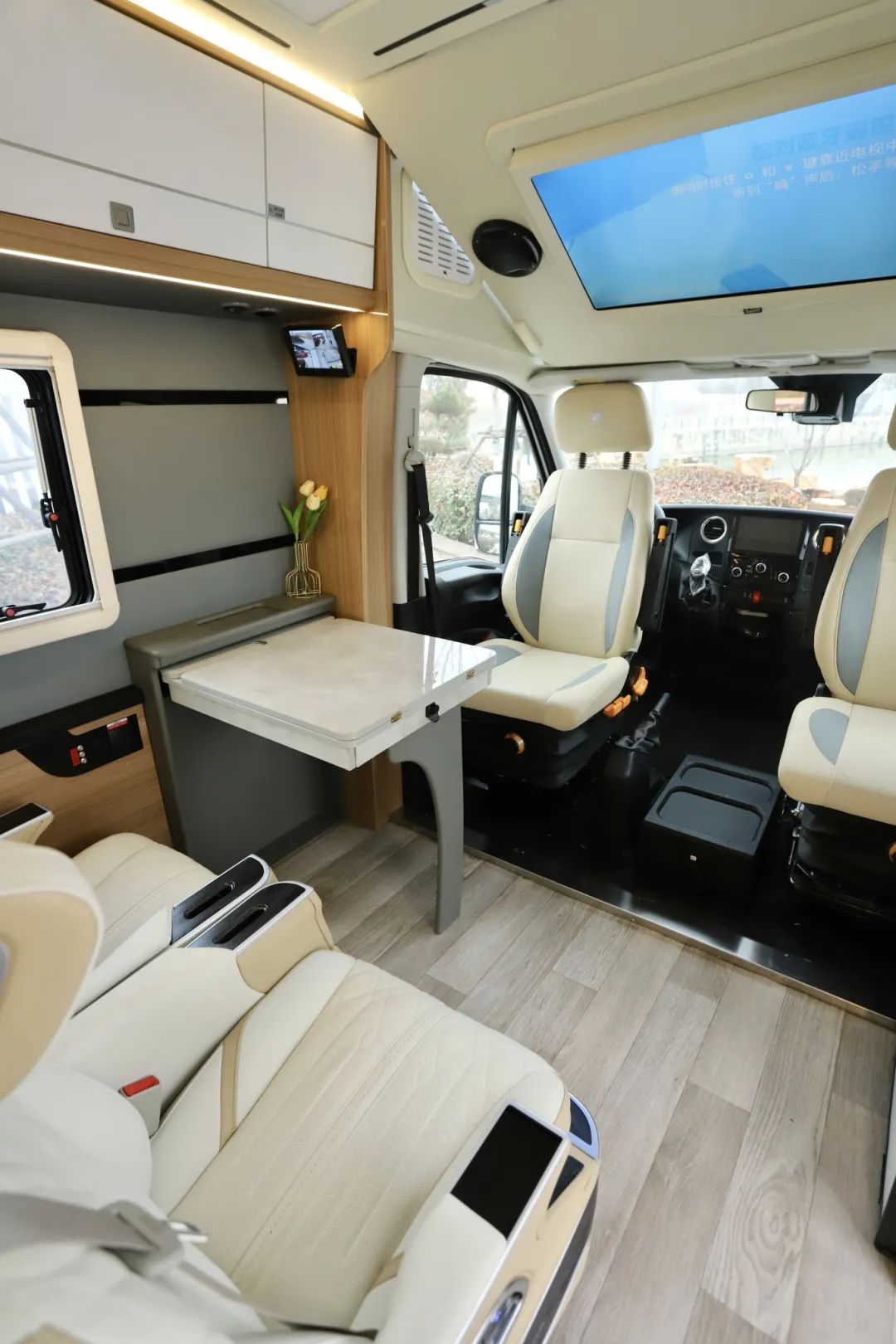 不愧是銷冠,一口氣被定了30多臺!今天就為您帶來它的詳解版! 底盤性能優(yōu)越,采用依維柯歐勝房車專用底盤,3.0T排量,8AT柴油自動擋變速箱,動力強勁;車長5米99、寬2米3、高2米85,就這個車高再也不用擔心3米的限高,暢通無阻。 作為旅居車而言,沒有強制的報廢年限,在節(jié)假日高速還能免費通行。車頭前臉滿天星進氣格柵,兩個鹵素大燈、車身兩側(cè)加長加寬后視鏡,讓您有個更好的視野,觀察后車情況。小額頭設計盡顯時尚,減少行車的風阻和風噪,通過性也絲毫不用擔心,上方還開了一扇超大的觀景天窗,打開天窗即可欣賞美景。 現(xiàn)在來到副駕駛一側(cè),車身四周配備四路監(jiān)控,下邊則是一個可伸縮的進口遮陽棚,拉開最大尺寸可達到2.5m*3m,無論是戶外做飯還是乘涼休息都可以用到它。 下面的兩個戶外照明燈,在晚上也不用擔心照明問題;再往下則是兩個雙層真空亞克力材質(zhì)的外推窗,保溫隔音降噪的效果都非常不錯。 玻璃下方的擋板拉開可作為戶外做飯的小桌板,切菜,備菜或者放調(diào)味料,里面則是一個儲物空間采用內(nèi)外貫通的設計,里邊配備淋浴花灑和五孔插座,戶外取水沖洗瓜果或者戶外充電也非常方便。 至于做飯的話,就往后邊看,在裙邊處設置了抽拉柴油爐,飛翔的自主知識產(chǎn)權(quán),現(xiàn)在已經(jīng)研發(fā)到了第四代,無明火防強風,五檔調(diào)節(jié),火力最大值可達到5000瓦,即使在青藏高原也可以輕松做飯。 來到車尾處,18L衛(wèi)生間黑水箱,可選裝后爬架以及自行車架,可解決最后一公里的問題;后腳架爬上去可以清理落葉,打掃太陽能板,下面是220伏外接市電口,可以及時給車子進行補電。 在主駕駛一側(cè)有本車最大的儲物空間,日常大件的行李以及戶外桌椅都能輕松放下,旁邊是重力加水口,配備200升凈水箱和68升灰水箱,可滿足日常洗漱做飯所需的用水量。 來到駕駛艙,配備有多功能方向盤、倒車雷達、倒車影像、胎壓監(jiān)測、定速巡航、車道偏離預警等多種輔助系統(tǒng),就連主副駕駛都是原廠的懸浮座椅,可以很好的減輕顛簸路段的不適感。 除此之外,主副駕駛還能進行180度的旋轉(zhuǎn),進一步增加可利用的空間;二排準備的是兩張航空座椅,采用的是帶通風按摩加熱的設計,符合人體工程學,靠背推背可以進行不同角度進行調(diào)節(jié),更好緩解旅途中的疲勞,旁邊還貼心給大家準備了USB接口以及五孔插座。 四路監(jiān)控的顯示屏就在我們眼前,支持語音喚醒,不需要動手就能輕松掌握車外的情況,還準備了新風系統(tǒng),保證車內(nèi)空氣的流通。 至于桌子,采用的都是升降折疊桌,僅需一個按鈕,不超過10秒鐘,不超過三個動作就能升起,常規(guī)的大小為70乘53公分,如果想供更多的人使用,可以把桌子拓展的更大,變成1米2的長度,滿足更多人使用,不用的時候一鍵收回。 會客區(qū)正前方配有32寸液晶網(wǎng)絡電視,可以輕松實現(xiàn)立體環(huán)繞沉浸式追劇。 那作為一臺核載六人的房車,現(xiàn)在只看到了四個座椅,另外兩個座椅則隱藏在了后方的固定床下,只需要將床墊掀起來,按動開關,床板進行收回,兩個座椅就呈現(xiàn)在我們面前,這樣即使寒暑假一起出行,這臺車也能完全容下了。 不用的時候收回去上方就是雙人大床,1米3乘2米的尺寸,夫妻兩人輕松睡下,床頭上方配有家用空調(diào),既能制冷又能制熱,晚上拉上隱私簾,這就是自己的獨立空間。 床上以及會客廳的上方都是鋁合金的吊柜,采用暗鎖設計,在床上活動也不用擔心碰到頭,里面可以放下各種衣服以及生活用品。 旁邊就是衛(wèi)生間的位置,采用鋁合金圓弧形設計,最大程度的利用房車空間。 打開衛(wèi)生間門,設施一應俱全,賽特福德抽拉旋轉(zhuǎn)式馬桶、折疊大容量洗手盆、花灑、不同尺寸的置物架、毛巾架、全身鏡、五孔插座、上方雙向換氣扇,可以做到麻雀雖小五臟俱全,因為功能齊全,也贏得了眾多車友的喜歡。 內(nèi)置廚房也是這臺車的一個亮點,灶臺采用微晶面板,密封性好,打開面板,就可以看到內(nèi)置廚房的柴油爐,燃料直接來源于油箱內(nèi)的柴油;無明火防強風,火力最高達到5000瓦,煎炒烹炸都不在話下。 灶臺旁邊設有洗菜盆,冷熱可調(diào)節(jié)的水龍頭,旁邊有凈水設備出水口,具有反滲透功能,喝水更放心;油煙問題大家也無需擔心,上方配備12伏強排抽油煙系統(tǒng),兩個檔位可調(diào)節(jié),基本可以抽干凈,如有少部分殘留煙,可把吊柜降下來,近距離抽取,同時還可以啟動新風系統(tǒng),使室內(nèi)空氣得到凈化, 吊柜降下來也會有更多的儲物空間。 旁邊還有96L冰箱,上方微波爐,做點簡餐很方便;就這樣的廚房系統(tǒng)您還滿意嗎? 最后給您分享一下這車的一個小玄機,就是它的第二張床,在天花板的上方,只需要一鍵進行控制,1米3乘2米的尺寸,承重可以達到600斤,睡下兩人也非常輕松,不需要的時候還可以當成儲物空間,一物多用將空間利用到極致。 本車配備了3000w逆變器、800AH鋰電池、1200w太陽能板;200L清水以及68L灰水。 富裕的生活空間加上強勁的底盤動力,帶著我們的家人或者三五好友一起,馳騁在廣袤無垠的公路上,而這輛車,就是我們開啟幸福之旅的神奇鑰匙,載著滿滿的愛與希望,駛向夢想的彼岸! 高配現(xiàn)車一臺,車漂亮,價格也漂亮,下方評論區(qū)留言,絕對有驚喜哦~