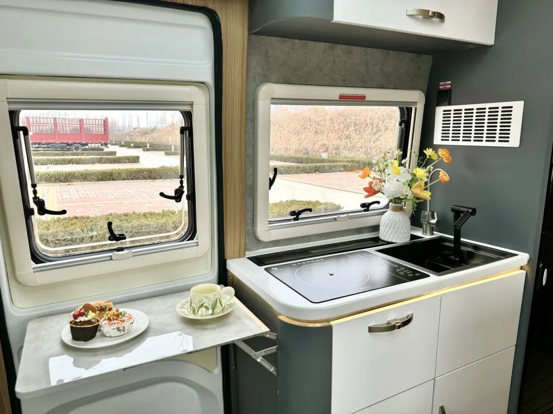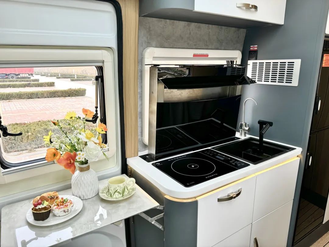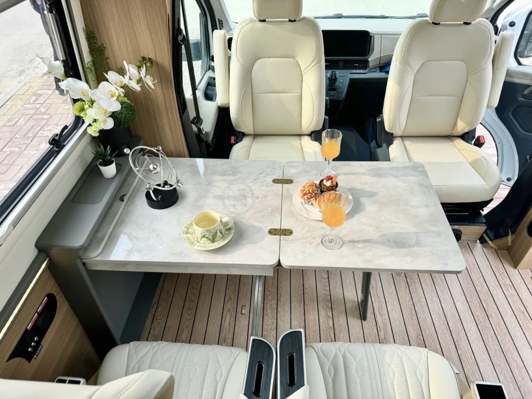 B型車的外觀、C型車的大空間,里面竟然可以做到四座三床雙廚房,一直期待的福特T8鐵C終于和大家見面了! 從最初的鐵 C 到福特 V348 底盤的鐵 C—創(chuàng)世版,再到搭載福特 T8 底盤的鐵 C!鐵 C 這款車向來是飛翔的經(jīng)典設(shè)計之作,每一次的升級換代均凝聚著飛翔設(shè)計團隊的智慧與心血,從鐵殼到一體成型三明治結(jié)構(gòu)的轉(zhuǎn)變,更是有力見證了對品質(zhì)的追求。 2.3T柴油發(fā)動機、采埃孚8AT自動擋變速箱,最大功率128KW,峰值扭矩為430N.M,車長5米99、寬2米35、高3米,依舊是滿足上藍(lán)牌持C證的駕駛門檻,無需增駕。 整體的外觀非常低調(diào),只有黑白兩色,沒有任何的拉花設(shè)計,非常耐看內(nèi)斂,從外觀上看幾乎看不出是一臺房車,但簡單的外觀卻擁有不簡單的殼體,采用一體成型的設(shè)計,通過模具開模而成,無接縫無打膠、有筋線有腰線,也不用擔(dān)心車用久了生銹開裂;三明治的板材結(jié)構(gòu),最外層是高分子的復(fù)合材料,中層是XPS的保溫層,最內(nèi)層為鋁合金的承重龍骨,整車的保溫隔音降噪的效果會更好一些;沒有采用B型房車推拉門,而是乘客門,讓更大化地利用車內(nèi)空間。 中門旁邊的艙門打開,可以拉出來高原版本的柴油爐,也是飛翔的自主知識產(chǎn)權(quán),最高火力值可以達(dá)到五千瓦,火力值更加強勁,還是防強風(fēng)的模式,在這里做飯更加輕松。 來到后尾門的位置,可以發(fā)現(xiàn)和之前對開門的形式,有所區(qū)別,采用上掀式的設(shè)計,物品的拿取更加簡單。下方為您配備電動駐車支腿,其電動驅(qū)動系統(tǒng)操作極為簡便,只需輕按車內(nèi)遙控器,支腿便能迅速、平穩(wěn)地展開與收回,無需手動費力調(diào)節(jié)。 來到主駕駛的一側(cè)就是本車的加水口以及充電口了,那本車采用48V的電路系統(tǒng),配備了3000w的逆變器、400AH鋰電池、800w太陽能板;240L清水箱、170L灰水箱,出行水電無憂。 在駕駛艙區(qū)域,配備有電子助力方向盤、12.3英寸的雙聯(lián)屏、倒車?yán)走_(dá)、倒車影像、胎壓監(jiān)測、定速巡航等多項駕駛輔助系統(tǒng),在行車過程中更加方便。 會客廳設(shè)置了兩張航空座椅,除基本的調(diào)節(jié)功能之外,還帶有通風(fēng)按摩加熱等功能,可以看到整個會客廳的空間是相當(dāng)寬敞的,毫不夸張的講,在會客廳里打地鋪都完全能夠躺下,所以說在設(shè)計上是有很多加成的。 墻體一側(cè)采用了更加靈活的升降折疊桌,不用的時候整體空間開闊,當(dāng)我們進行使用的時候只需要一鍵就能上升,還能進行橫向拓展,可以得到1米2的超大桌面,一家人面對面的聊天或者娛樂打牌都是足夠的。 桌面使用的仿大理石的材質(zhì),不僅輕量化,打理起來也比較簡單,可以說這張桌子也是會客廳空間寬敞的關(guān)鍵因素。 會客廳的上方設(shè)置有家用空調(diào),駕駛室的上方為32寸的液晶網(wǎng)絡(luò)電視,可聯(lián)網(wǎng)可投屏。 會客廳頭頂?shù)奈恢镁褪蔷艑m格的燈池,提供車內(nèi)的照明,除了這個基礎(chǔ)功能之外,還是一張雙人床鋪,通過電控按鈕進行操作就可以得到一張1米3乘2米的雙人大床。 當(dāng)平時出行人數(shù)比較多的時候,它就可以派上用場,前方還有一扇大大的觀景天窗,晚上停在駐車地,可以欣賞晚上的景色,真正做到了用的時候好用,不用的時候不影響空間。 不僅如此,在后方還有兩張床可供選擇,目前圖片所呈現(xiàn)的是一張單人床,留給過道充足的空間。 當(dāng)晚上兩人休息的時候,就可以將床向衛(wèi)生間的方向進行拓展,這樣就從單人床變成一張雙人床了。 雖然還是大家熟悉的雙人床,但是在之前的基礎(chǔ)上進行了優(yōu)化升級,之前床拓展之后衛(wèi)生間就沒辦法使用了,但是現(xiàn)在衛(wèi)生間的門板更加靈活,即使床鋪進行拓展,旁邊也有部分空間方便晚上起夜進出衛(wèi)生間。 除此之外,在固定床的上方還有一個大的儲物吊柜,平時的時候可以放置衣服被褥,但是當(dāng)人數(shù)比較多的時候,吊柜還可以下降變成一張單人床,這樣一上一下就是子母床的布局了,將空間得到充分的利用。 旁邊的衛(wèi)生間也是兩種尺寸進行選擇,更加靈活,內(nèi)部的設(shè)施也比較齊全,抽拉馬桶洗手盆、淋浴花灑換氣扇,一個人在這里洗漱洗澡上廁所通通不成問題。 你不說我不說,誰又能想象在房車?yán)镞€能擁有這么大一個廚房呢?電磁爐搭配升降式抽油煙機,在車?yán)镒鲲堃膊挥脫?dān)心油煙了,平時不使用的時候抽油煙機隱藏在下方不占用臺面更加美觀。 上下都設(shè)置了儲物空間來放置廚具,旁邊加深式洗菜池用來清洗蔬菜水果,這樣車內(nèi)外都有廚房,隨時都能發(fā)揮廚藝,旁邊還有168L雙開門冰箱以及微波爐,方便儲存食物、做點簡餐。 出門在外,很多車友都在過候鳥式的生活,一年四季衣物的儲放是個大問題,如果搬來搬去無疑會影響您房車生活體驗感,但是這款車的儲物空間分布可以完全緩解您的儲物焦慮。 在冰箱旁邊分別由掛衣柜以及疊衣區(qū),可以分類放置,另外床的上方還有一個超大的儲物吊柜,也可以放置很多物品,當(dāng)然在車外床下還有超大儲物空間供大家去使用。 福特T8-鐵C整車功能區(qū)已展示完畢,關(guān)于價格的話,新年開新車,優(yōu)惠不用您說,新車發(fā)布,絕對優(yōu)惠到位!想了解更多上裝細(x