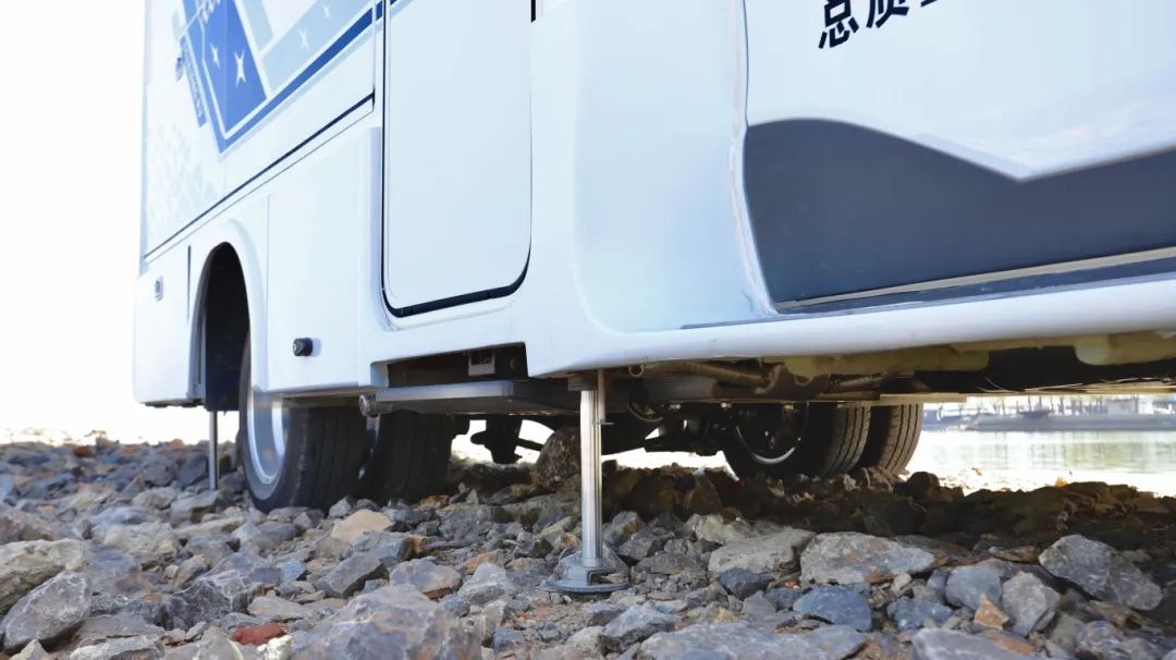 福特 T8 - 元界延續(xù)了經(jīng)典的小額頭設(shè)計,線條流暢自然,符合空氣動力學(xué)原理,降低風(fēng)阻,看起來更加靈動。車身尺寸為5990×2450×3000mm,這樣的尺寸在保證內(nèi)部空間的同時,也確保了良好的通過性。車底配備的液壓駐車支腿,與副梁一體成型,單個承載力達 5 噸,還帶有水平傳感器,可一鍵找平,適應(yīng)各種復(fù)雜地形,讓你駐車更加平穩(wěn)。