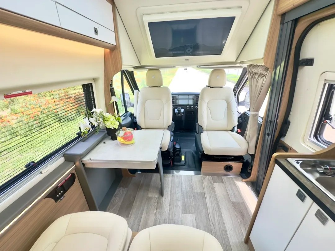 生活區(qū)域?qū)挸髁?,空間通透,中置可拓展衛(wèi)生間設(shè)計(jì),很好的將車(chē)內(nèi)空間做出隔斷,隱私性、空間感足夠舒適。