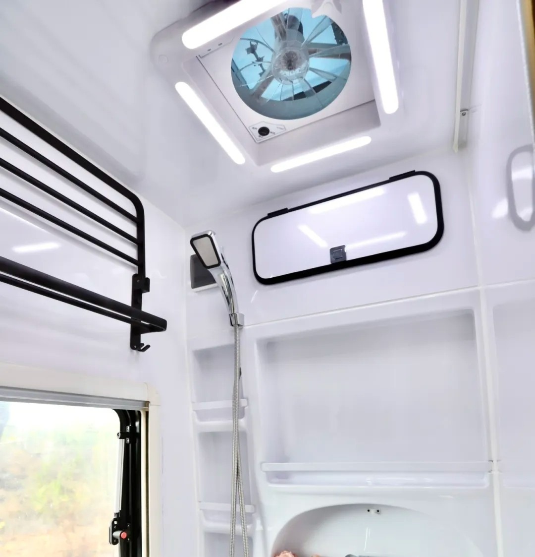 最后是大家關(guān)心的水電配置,標(biāo)配3000w逆變器、800AH鋰電池、1100w太陽(yáng)能板,為車輛提供穩(wěn)定電力支持;150L清水箱和42L灰水箱,滿足日常用水需求。這樣的配置,足以支撐一場(chǎng)長(zhǎng)時(shí)間、高品質(zhì)的旅居生活。提供了一個(gè)移動(dòng)的溫馨之家!
